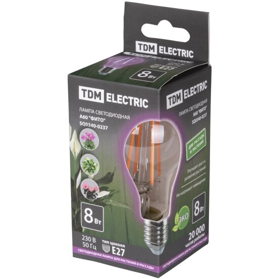 СохранитьСветодиодная лампа Tdm Electric A60-8 Вт-*230 В В-E27-CL "фито" 60*108 мм, SQ0340-0237 интересное: