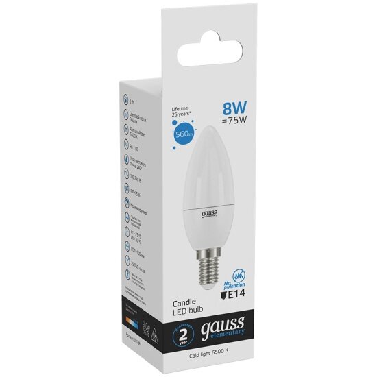 Ниже Вы можете прочитать отзывы на Светодиодная лампа Gauss LED Elementary Candle 8W E14 6500K 1/10/100, ознакомится с подробными характеристиками, посмотреть интересные обзоры и фотографии на Светодиодная лампа Gauss LED Elementary Candle 8W E14 6500K 1/10/100.