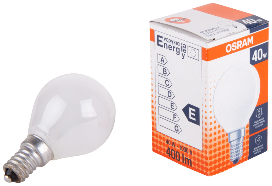 Лампа накаливания OSRAM Classic P, E14, P45, 40 Вт, 2700 К интересное: