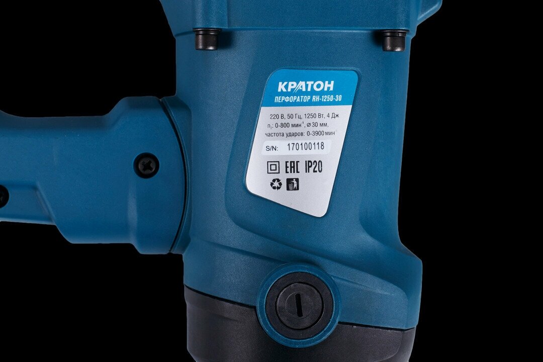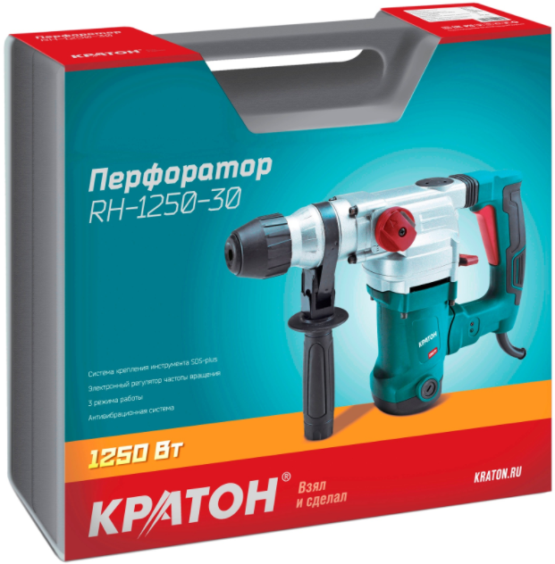 Перфоратор Кратон RH-1250-30 (Кейс, Патрон: SDS-plus; мощность: 1250 Вт Энергия удара: 4 Дж, Электронная регулировка частоты вращения)