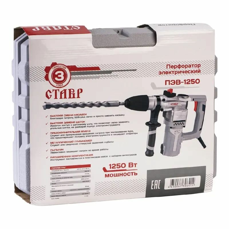 Перфоратор сетевой SDS Plus Ставр ПЭВ-1250 ст1250пэв, 1250 Вт, 6.5 Дж интересное:
