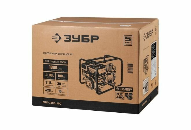 ЗУБР 1800 л/мин, мотопомпа бензиновая для грязной воды (МПГ-1800-100)