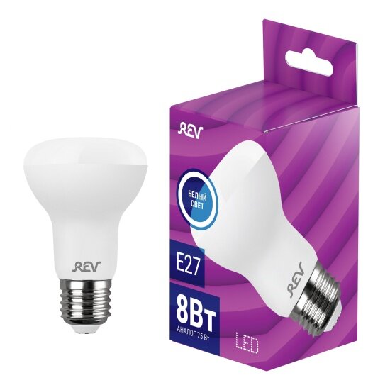 Лампочка светодиодная REV, R63, Е27, 8W, 4000K, дневной свет