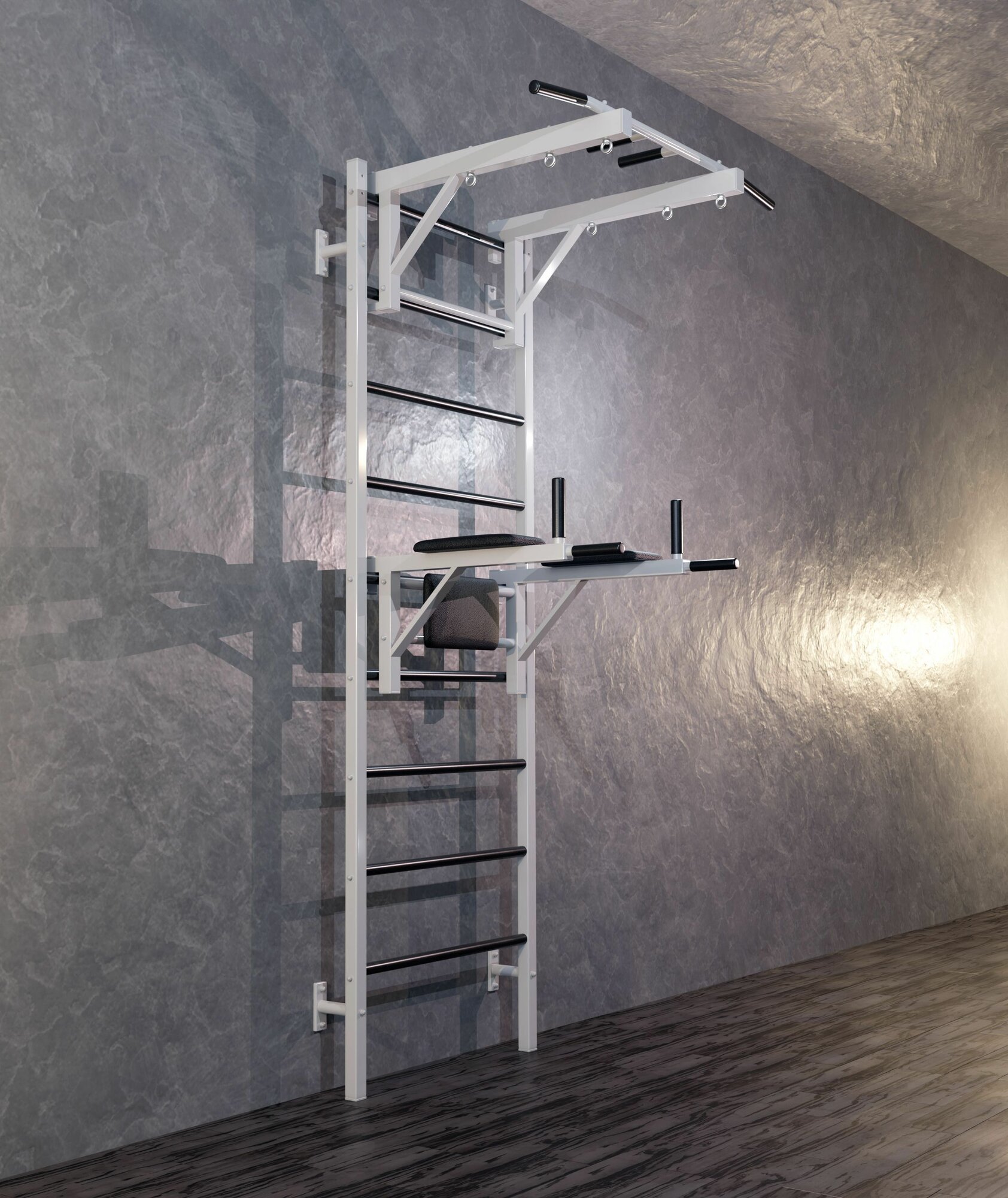 Шведская стенка металлическая усиленная + турник с большим выносом + брусья пресс навесные