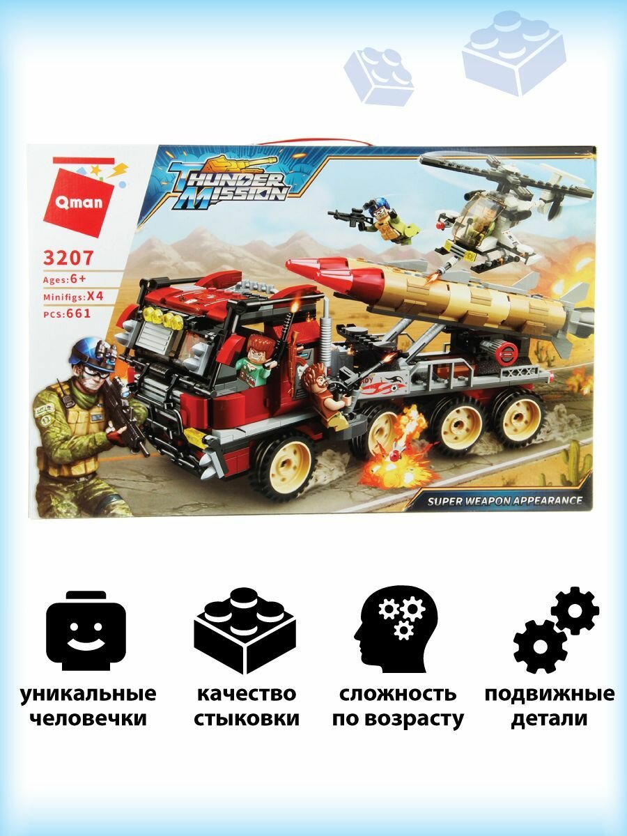 Купить Детский блочный конструктор Ракетная установка, 661 деталь, Qman / Пластиковый игровой набор для детей, 4 фигурки