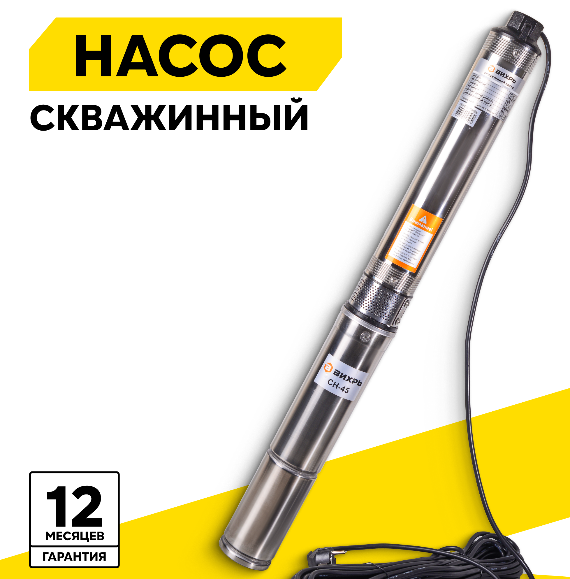 Купить Скважинный насос СН-45 Вихрь, 370 Вт, высота подъема – 45 м, 50 л/мин