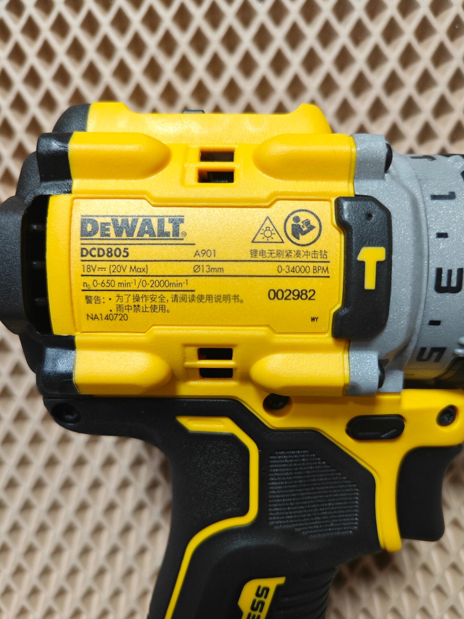 Аккумуляторная ударная бесщеточная дрель-шуруповерт DEWALT DCD805NT, 18 В, без аккумулятора и зу