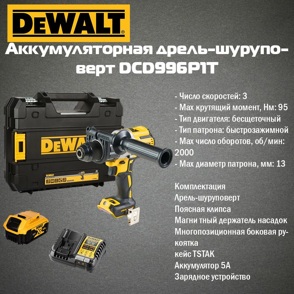 Купить Аккумуляторная бесщеточная ударная дрель-шуруповерт Dewalt DCD99612 (1 АКБ 5 Ач XR и ЗУ в кейсе TSTAK)