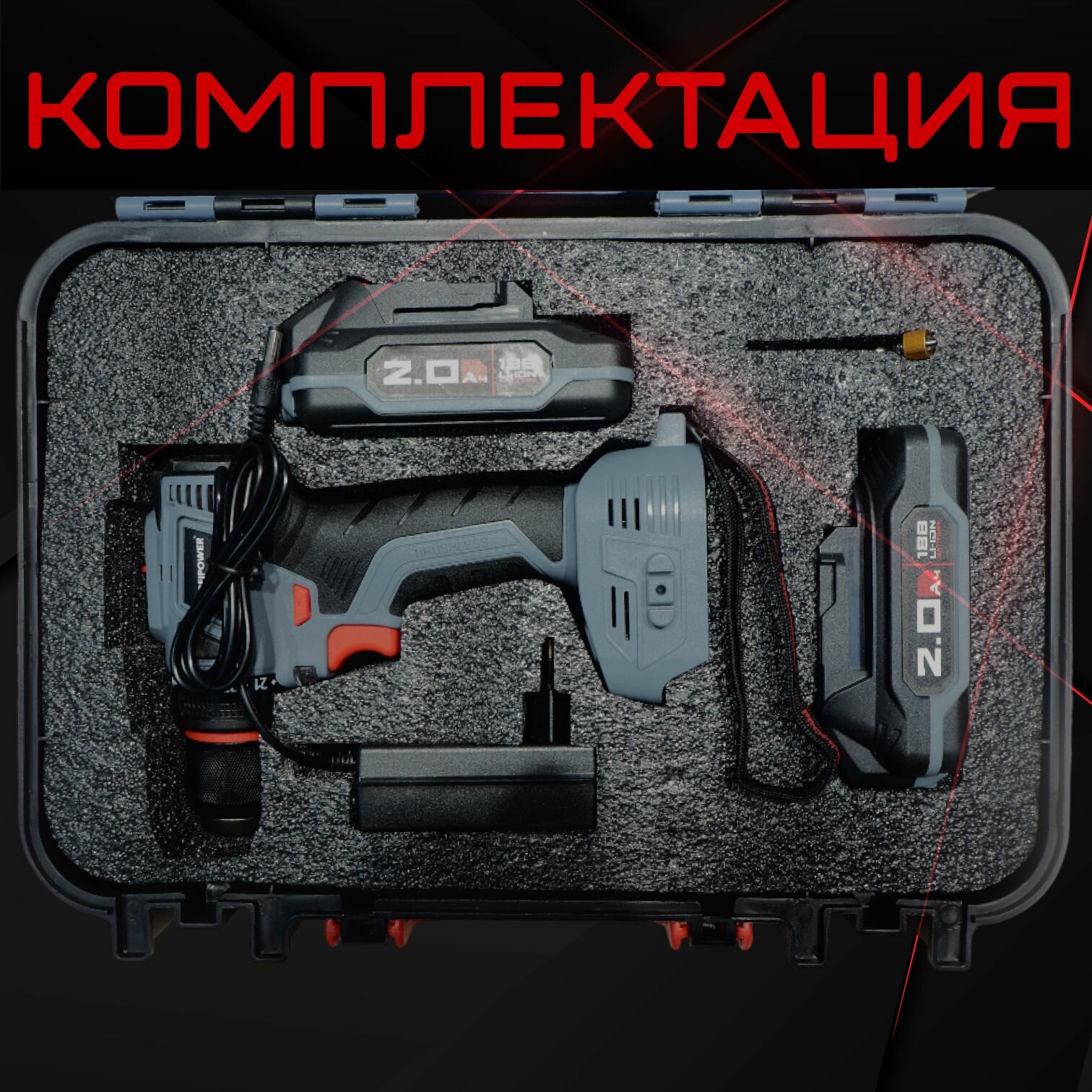 Шуруповерт акк. MKBL-18В с безщеточным двигателем 18В Li-ion-2шт., 2,0 Ач., З/У, 0,8-10мм, кейс ProfiPower