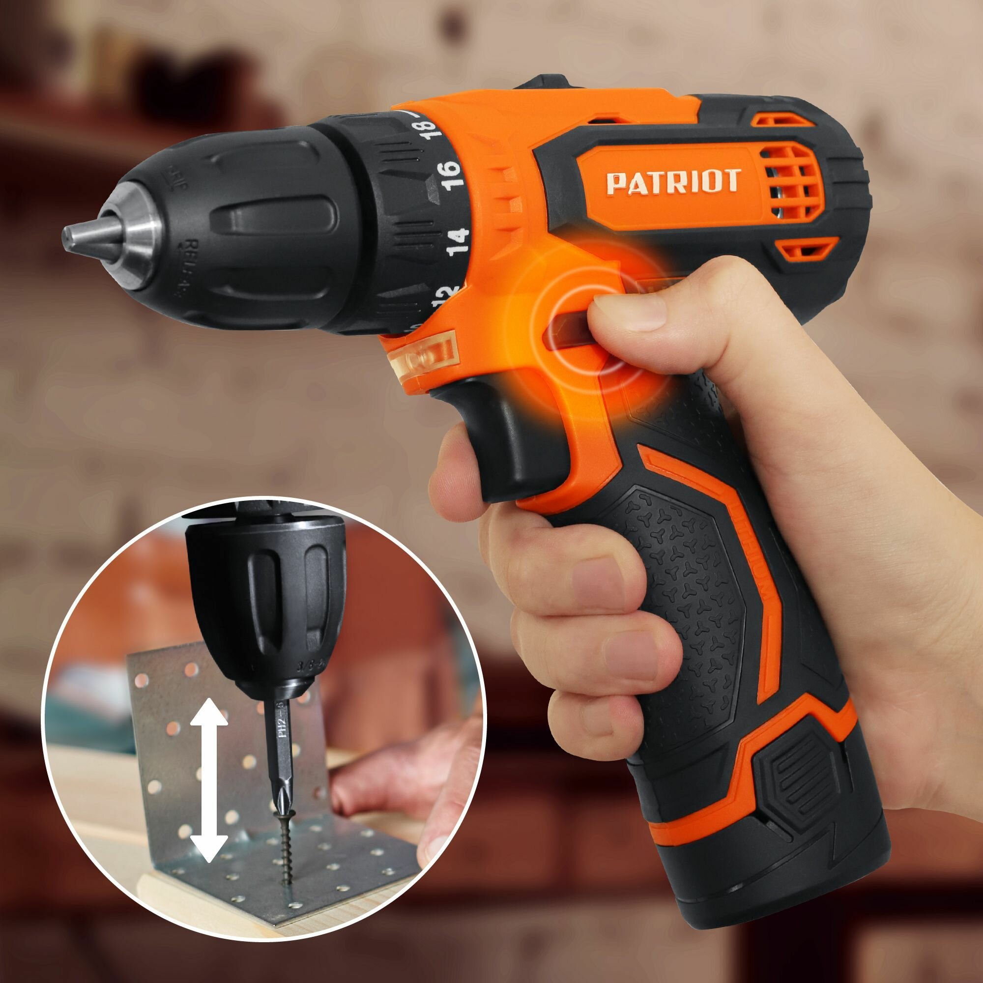 СохранитьДрель шуруповерт аккумуляторная PATRIOT BR 119Li, 12В 2,0Ач, 25Нм, 2 батареи в комплекте интересное: