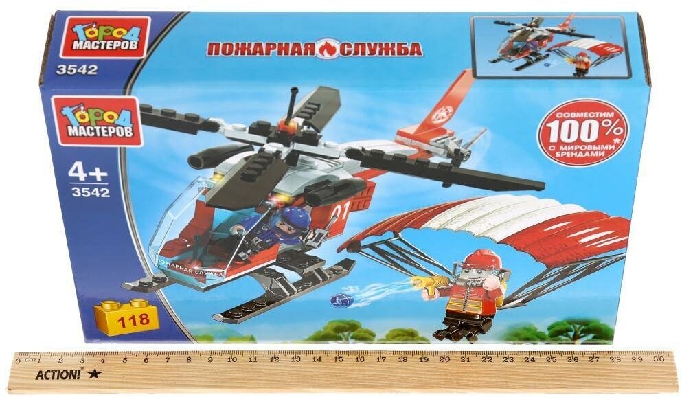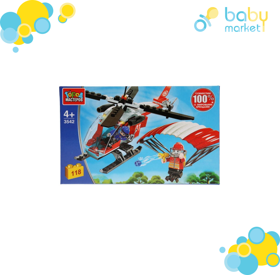 Конструктор Город Мастеров Пожарный вертолет с парашютистом, 118 деталей (3542-LL) интересное: