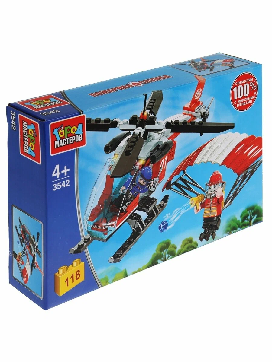 Конструктор Город мастеров пожарный вертолет с парашютистом, 118 деталей