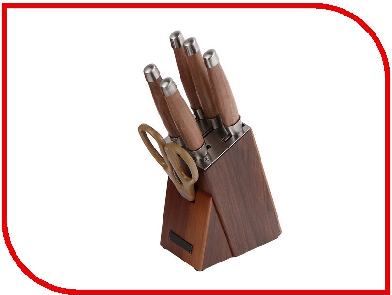 | Комплектация | - нож для хлеба 20 см; - нож для чистки овощей 9 см; - поварской нож 20 см; - разделочный нож 20 см; - универсальный нож 11,4 см; - ножницы; - подставка из каучукового дерева. |