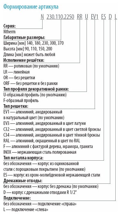 Встраиваемый в пол конвектор Varmann Ntherm N 180.90.2600 RR U EV1, с естественной конвекцией, с решеткой
