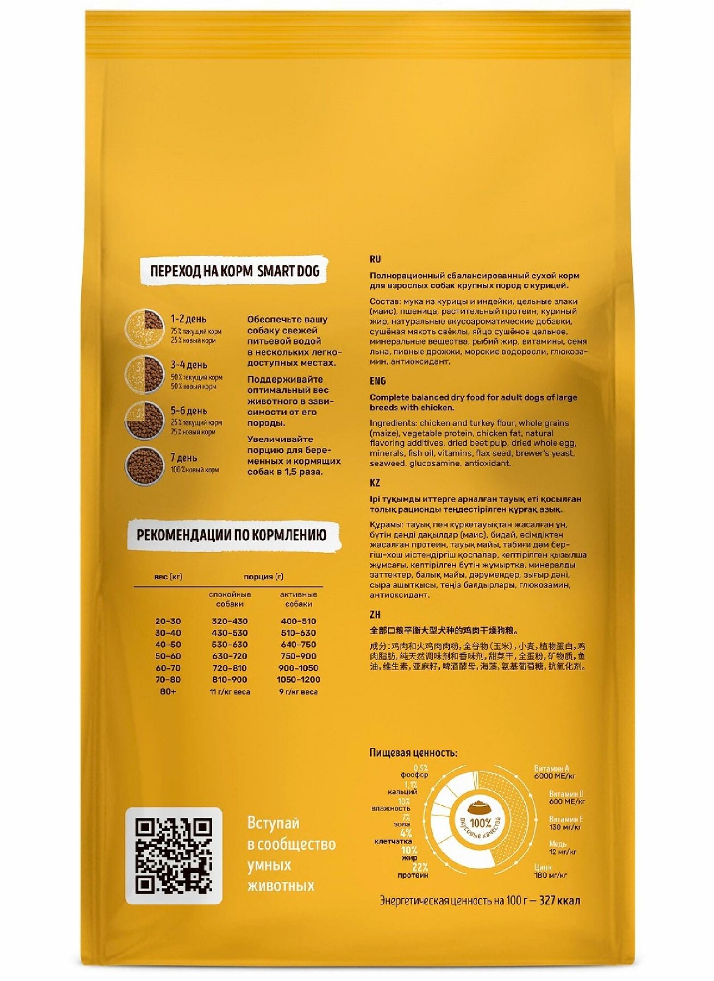 Smart Dog корм для собак крупных пород, курица 12 кг