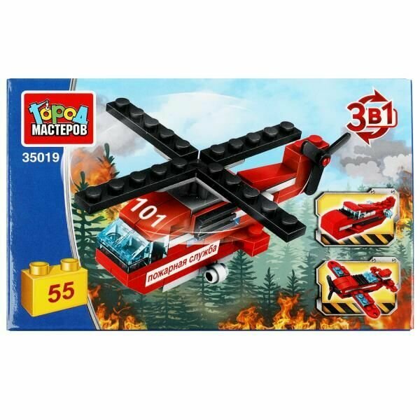 Купить Конструктор пожарный вертолёт 3в1, 55 дет. Город мастеров 35019-KK
