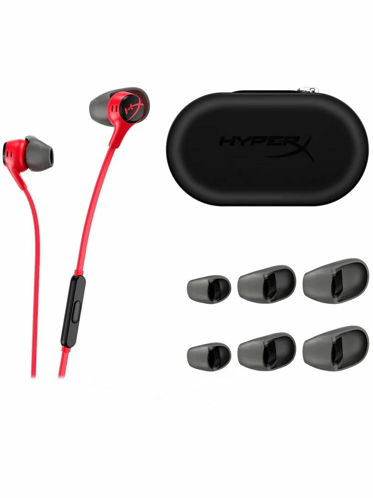 Игровая гарнитура HyperX Cloud Earbuds (вкладыши, 3.5mm jack, 14 мм, сменные амбушюры, 4P5J5AA/HX-HSCEB-RD)