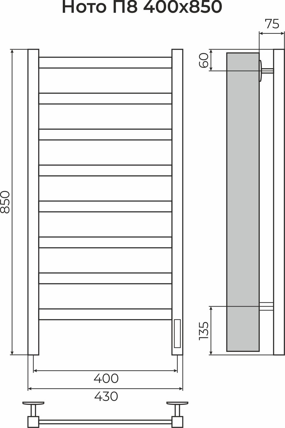 Купить Полотенцесушитель электрический TERMINUS (Терминус) Ното П8 400х850 мм, нержавеющая сталь, гарантия 5 лет.