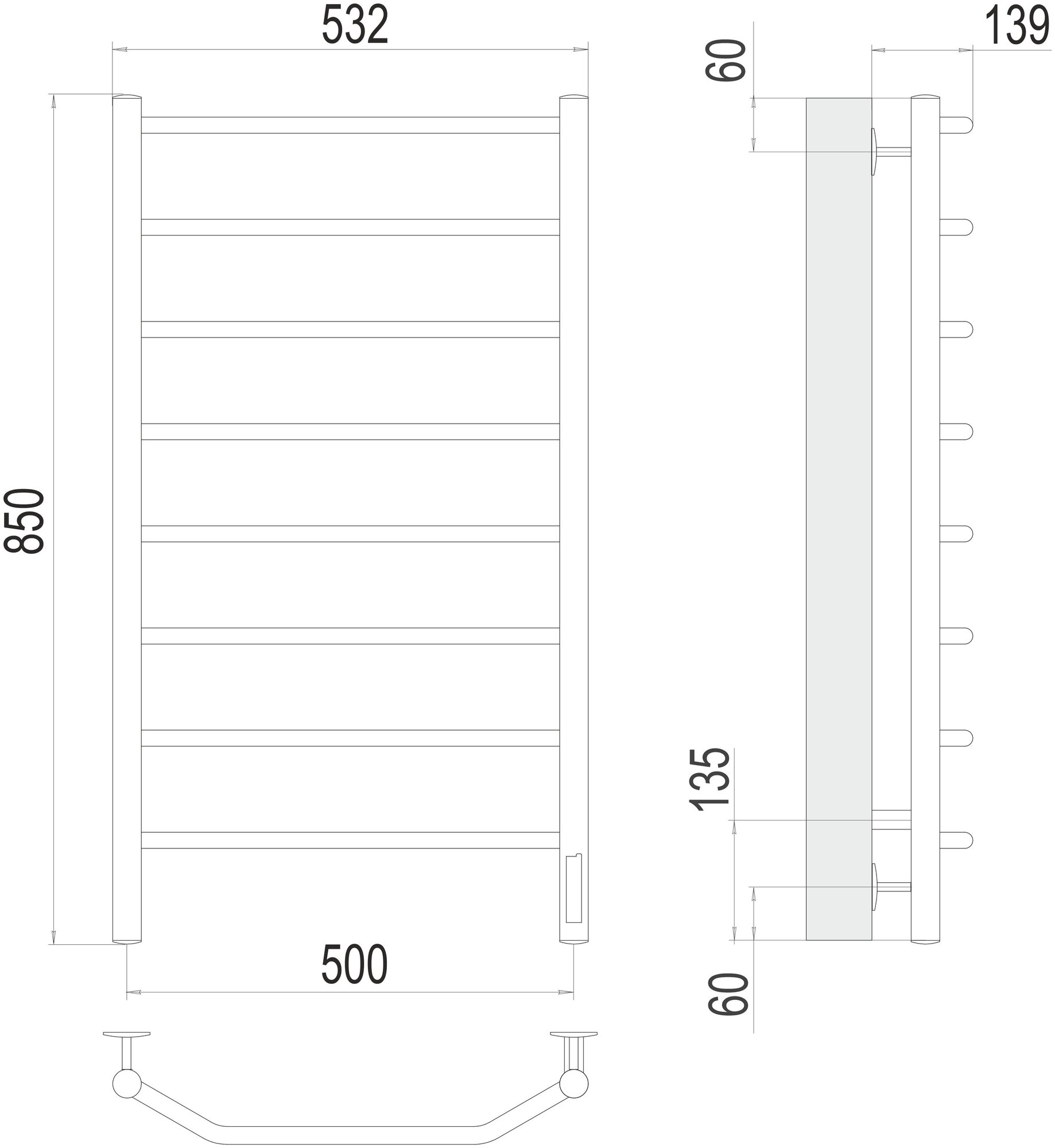 Полотенцесушитель электрический Terminus Виктория П8 500x850