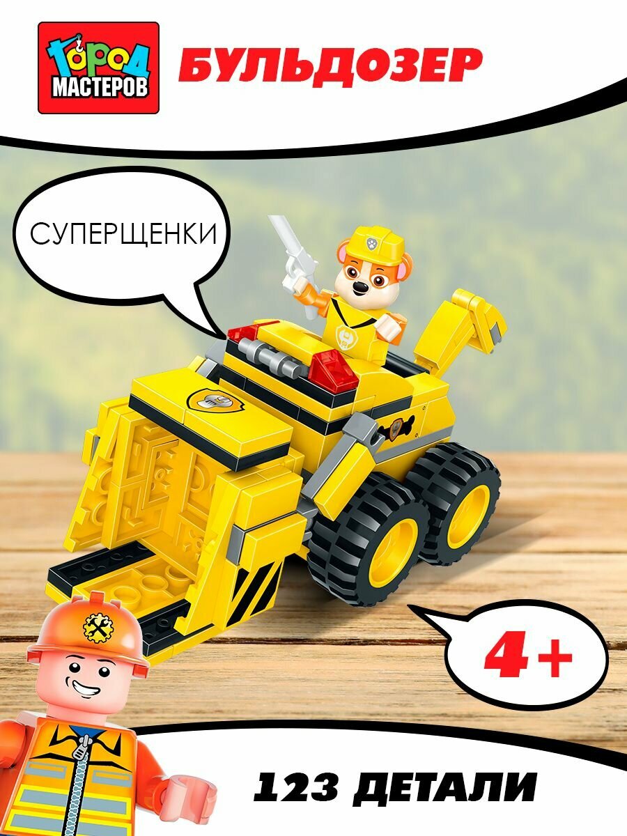 Купить Конструктор «Суперщенки» ТМ «Город мастеров» : БУЛЬДОЗЕР, 123 дет.