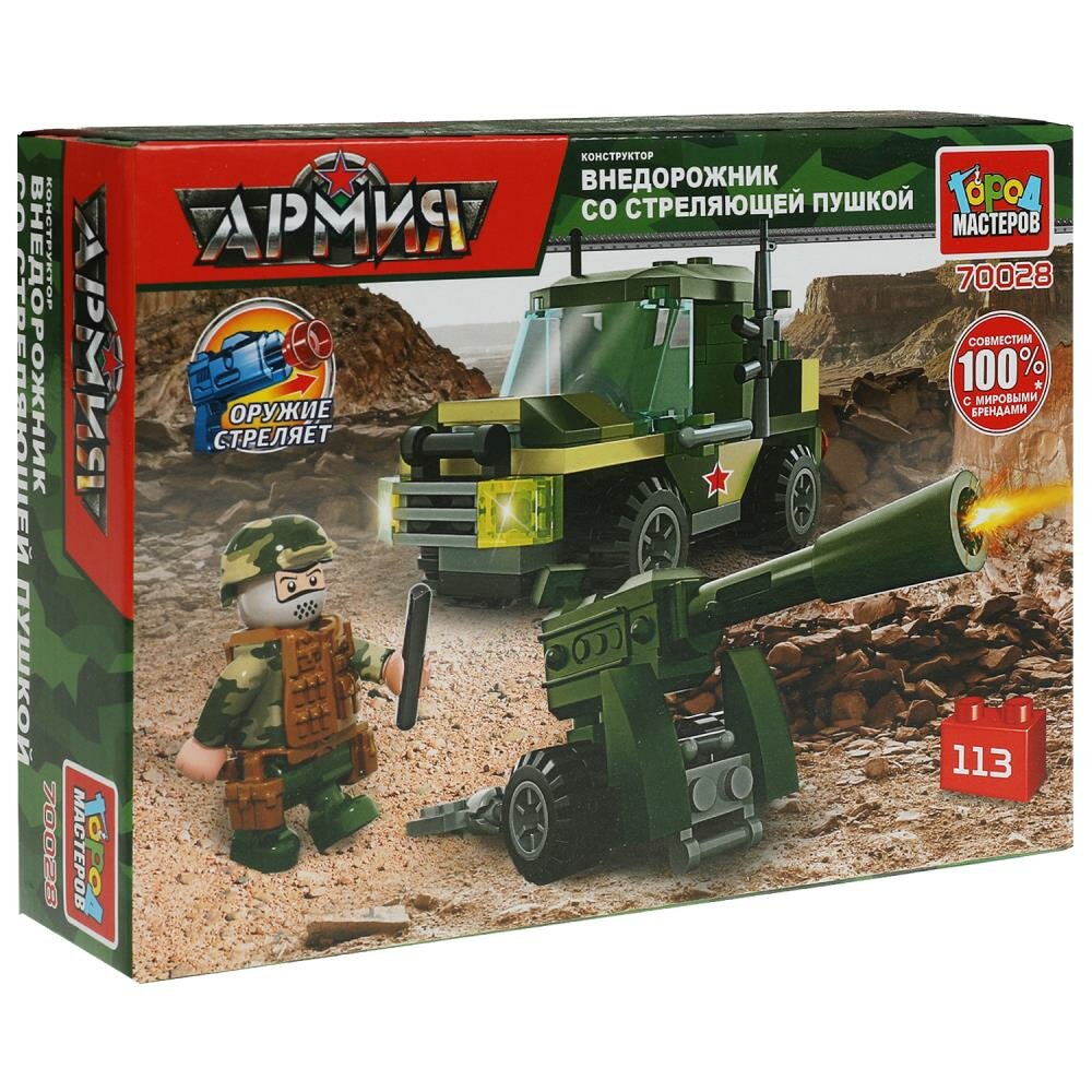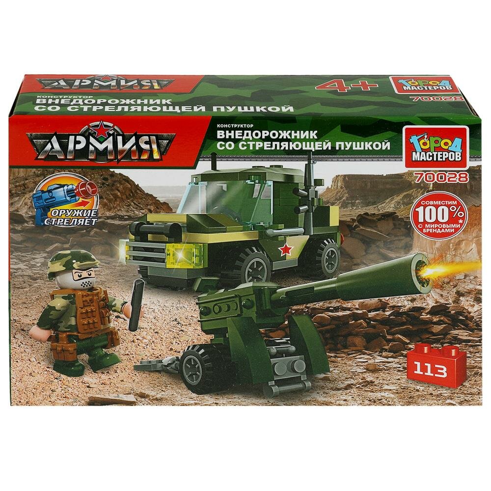 Купить Конструктор Джип с пушкой, 113 дет. Город Мастеров 70028-KK