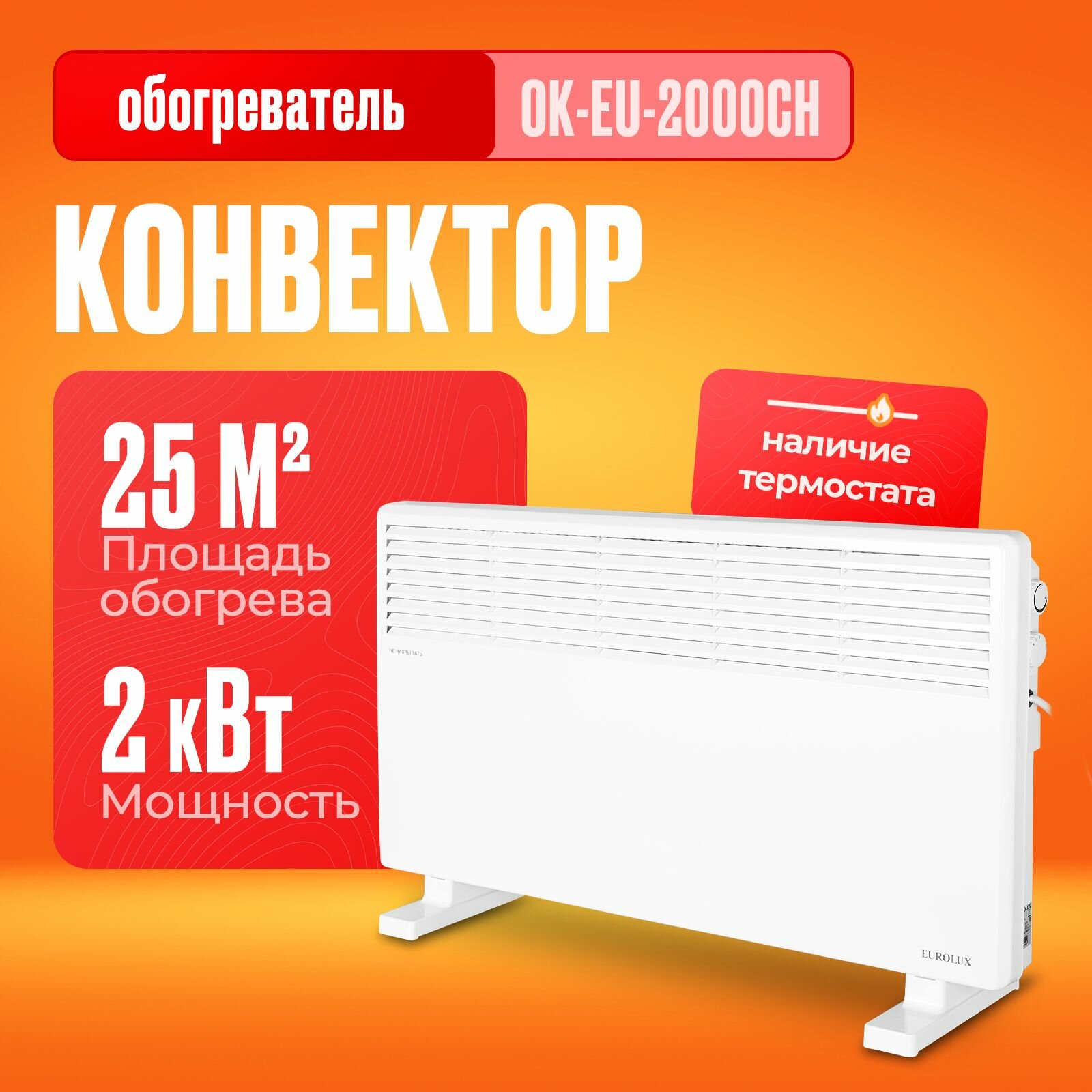 Конвектор ОК-EU-2000CH Eurolux, 2кВт, до 20м2, стич интересное: