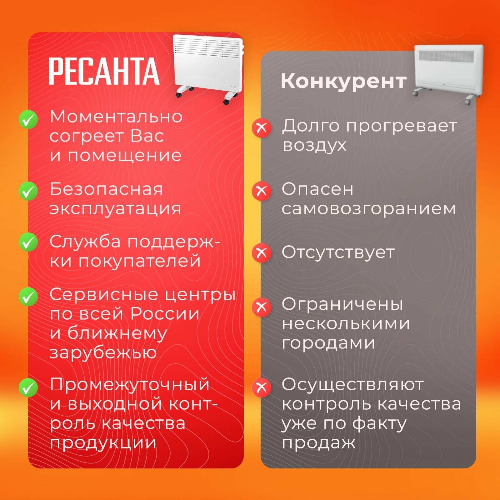 Конвектор 1600 Вт (25м2, термостат, колеса, 2 режима) Ресанта OK-160 мрех интересное: