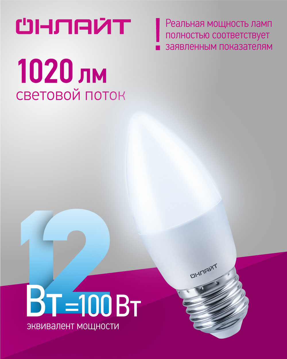 Лампа светодиодная онлайт 90 058, 12 Вт, свеча Е27, дневной свет 4000К, упаковка 10 шт.