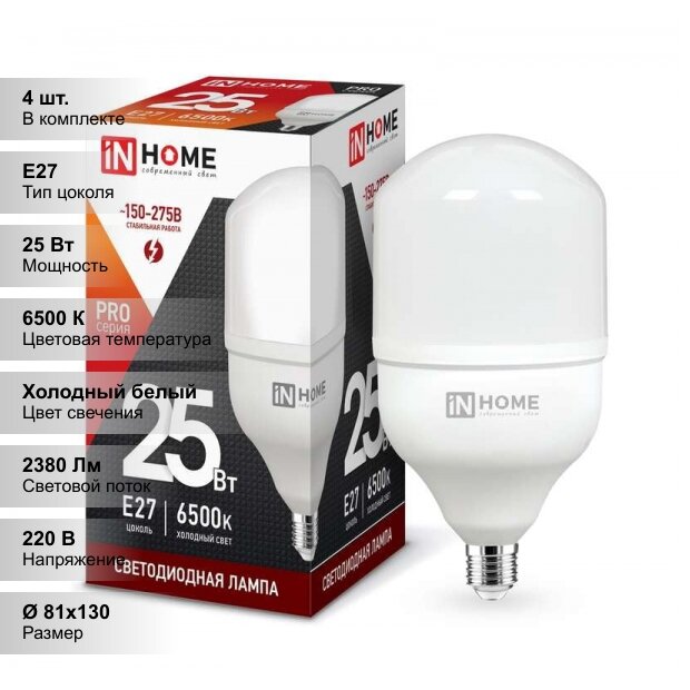 Купить (4 шт.) Светодиодная лампочка IN HOME 25Вт 230В E27 6500К