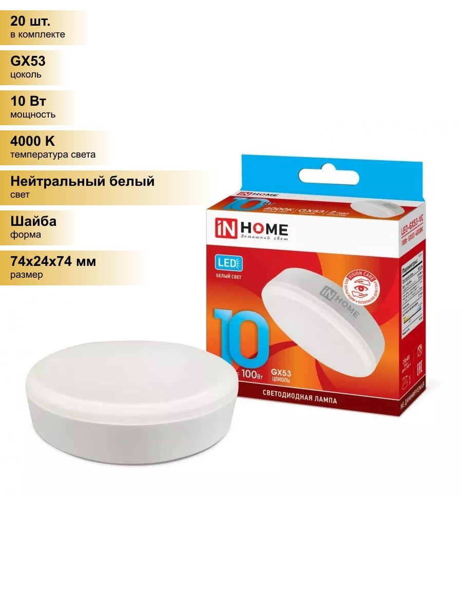 Купить (20 шт.) Светодиодная лампочка ASD/inHome VC GX53 св/д 10W(900lm) 4000К 4K 74x24 (без пульсации) 0761 Нейтральный белый. Цоколь GX53