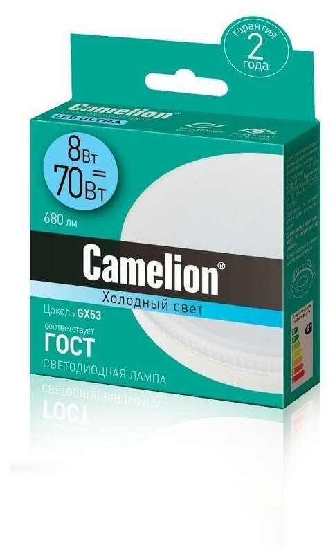 Эл.лампа светодиодная 8Вт 220В LED8-GX53/845/GX53 (8W=70 Вт 680 Lm) Camelion