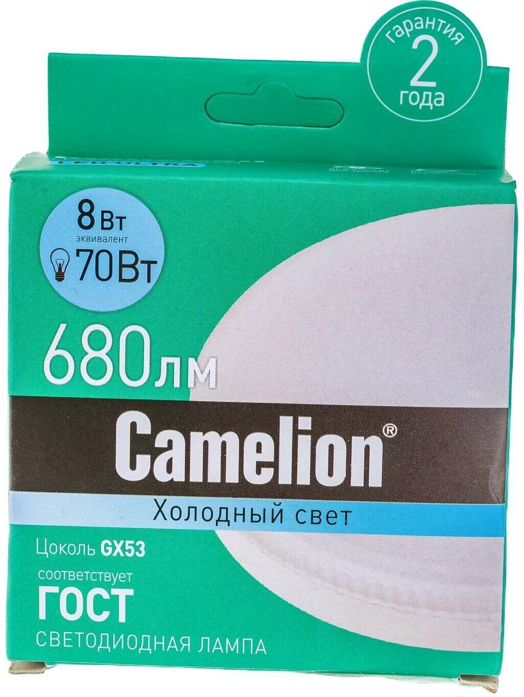 Лампа светодиодная GX53, 8 Вт, 70 Вт, таблетка, 4500 К, свет холодный белый, Camelion