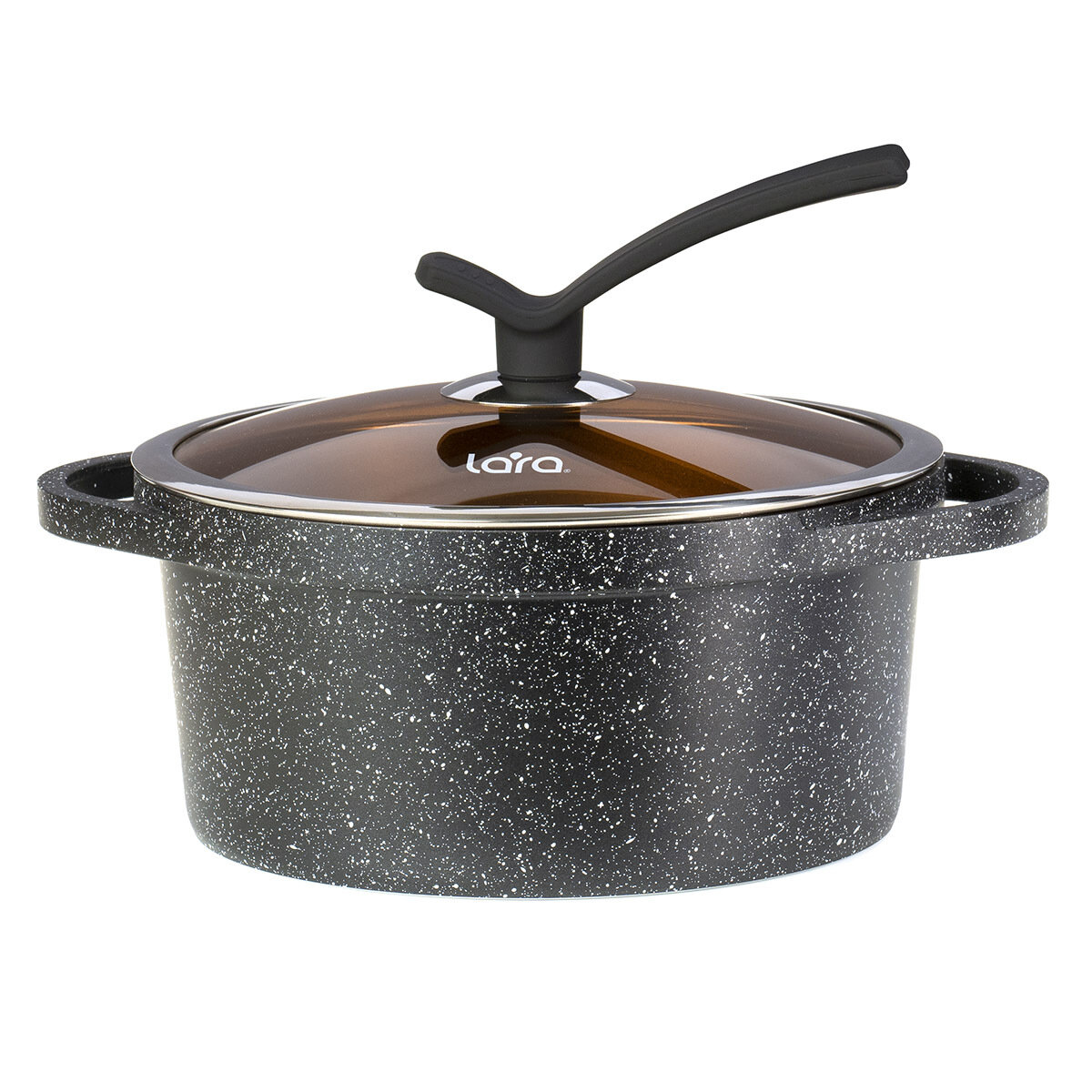 Кастрюля с крышкой LARA LR02-233 - Orlean мрамор, d28см, 7.3л, для всех типов плит