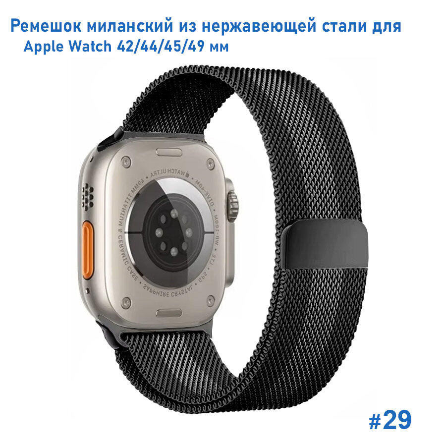 Ремешок миланcкий из нержавеющей стали для Apple Watch 42/44/45/49мм (2), черный, на магните