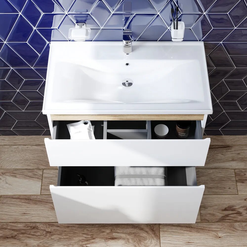 M85AFSX0802WG X-Joy, База под раковину, напольная, 80 см, 2 ящика, белый глянец