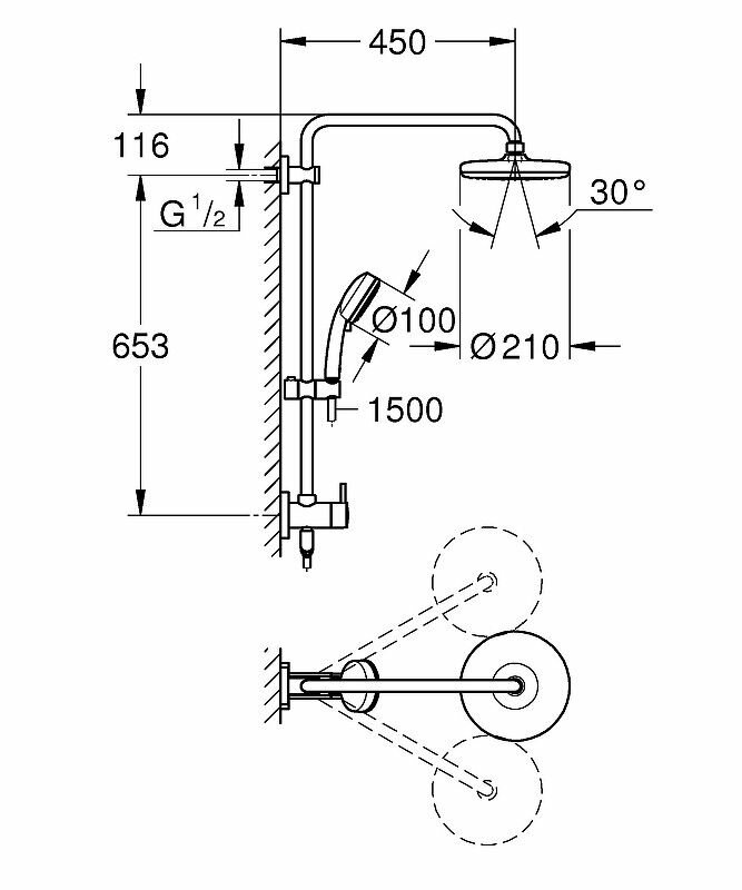 | Дополнительная информация | диаметр душевой лейки: 100 мм; диаметр верхнего душа: 210 мм |