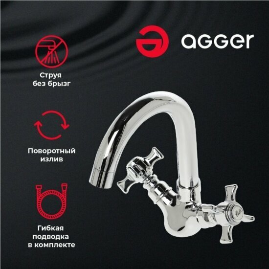 Смеситель для раковины вентильный с поворотным изливом Agger Retro-X A1701100, хром