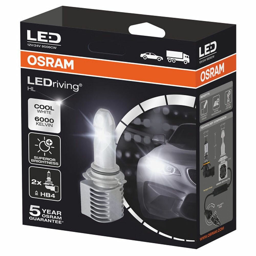 OSRAM 9506CW лампа г / с hb4 p22d ledriving 6000k 14w 2шт 12 / 24v 9506cw 4052899564107