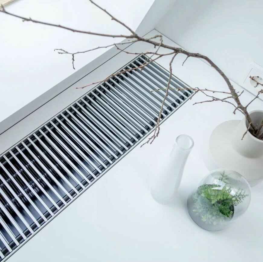 Внутрипольный конвектор КЗТО Бриз 260 х 80 х 1500 решетка цвет Алюминий с серыми втулками
