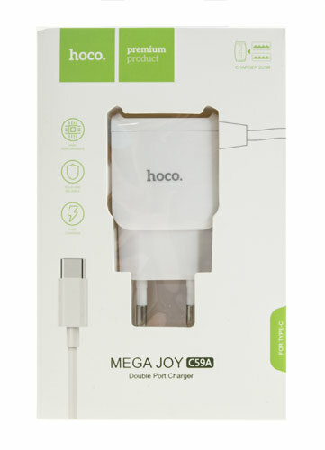 Сетевое зарядное устройство HOCO C59A Mega Joy 2xUSB с Кабелем Type-C, 2.4A, 10.8W, белый