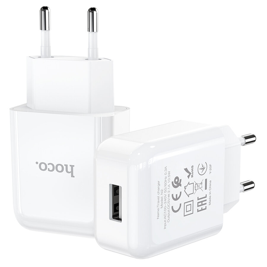 Сетевое зарядное устройство (СЗУ) Hoco N2 Vigour (USB) 2.1 А, белый