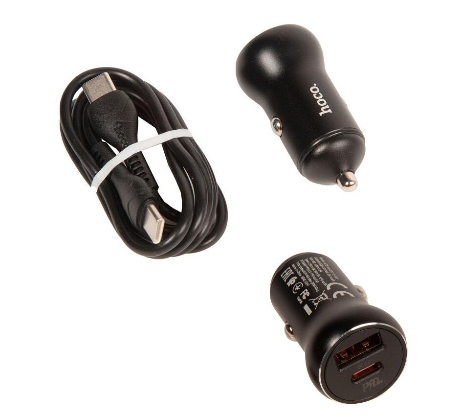 Автомобильная зарядка (от прикуривателя) HOCO NZ5, 1xUSB-A, 1xType-C, PD30W, черный