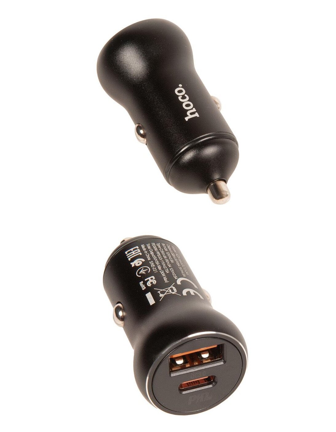 Автомобильное зарядное устройство для телефона в прикуриватель 30W быстрое PD+QC 3.0 USB+USB Type-C Hoco NZ5 Черное для Apple iPhone, Samsung, Xiaomi