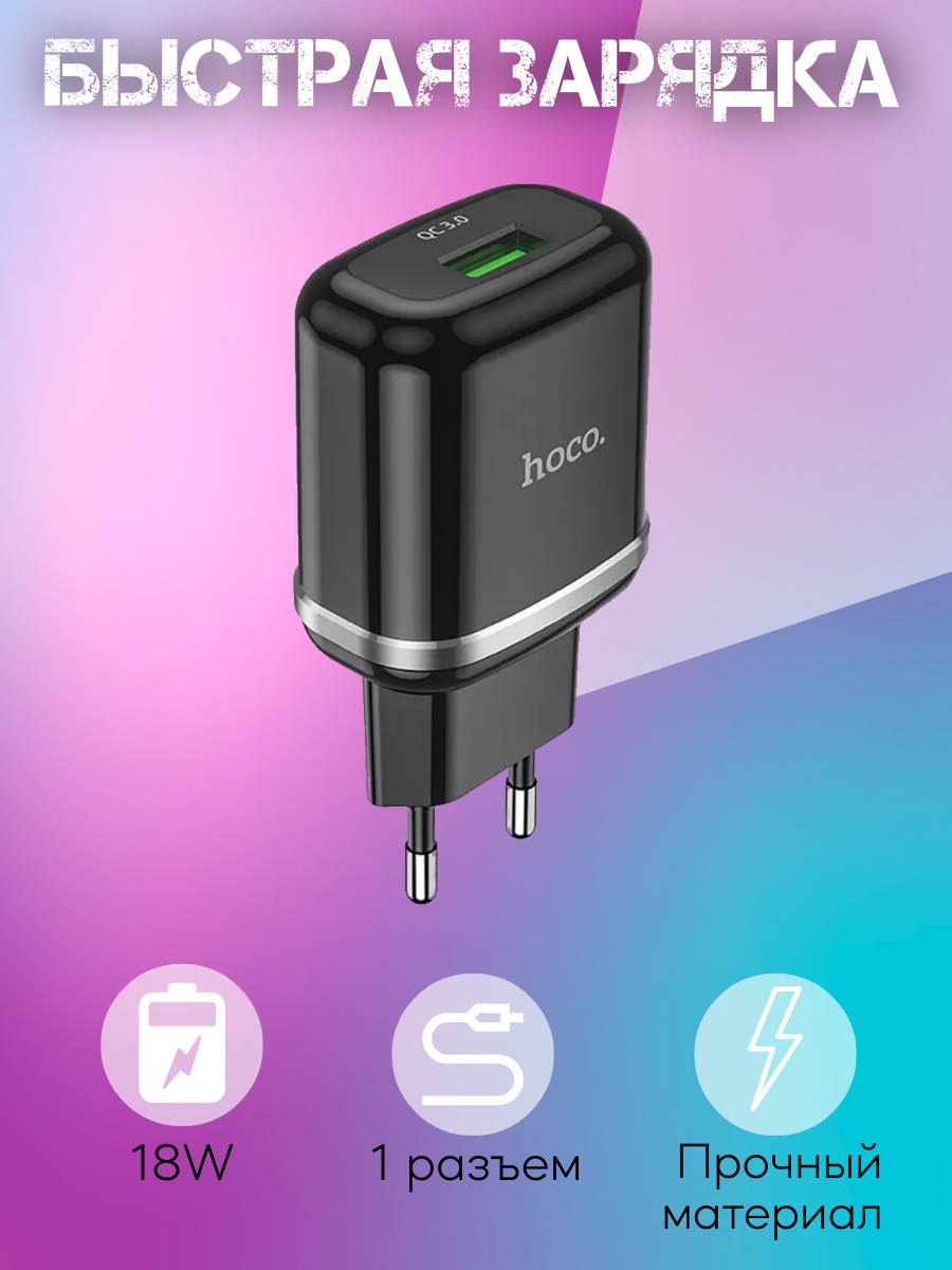 Блок питания (сетевой адаптер) HOCO N3 Special QC3.0, 18W, один порт USB, 5V, 3.0A, черный