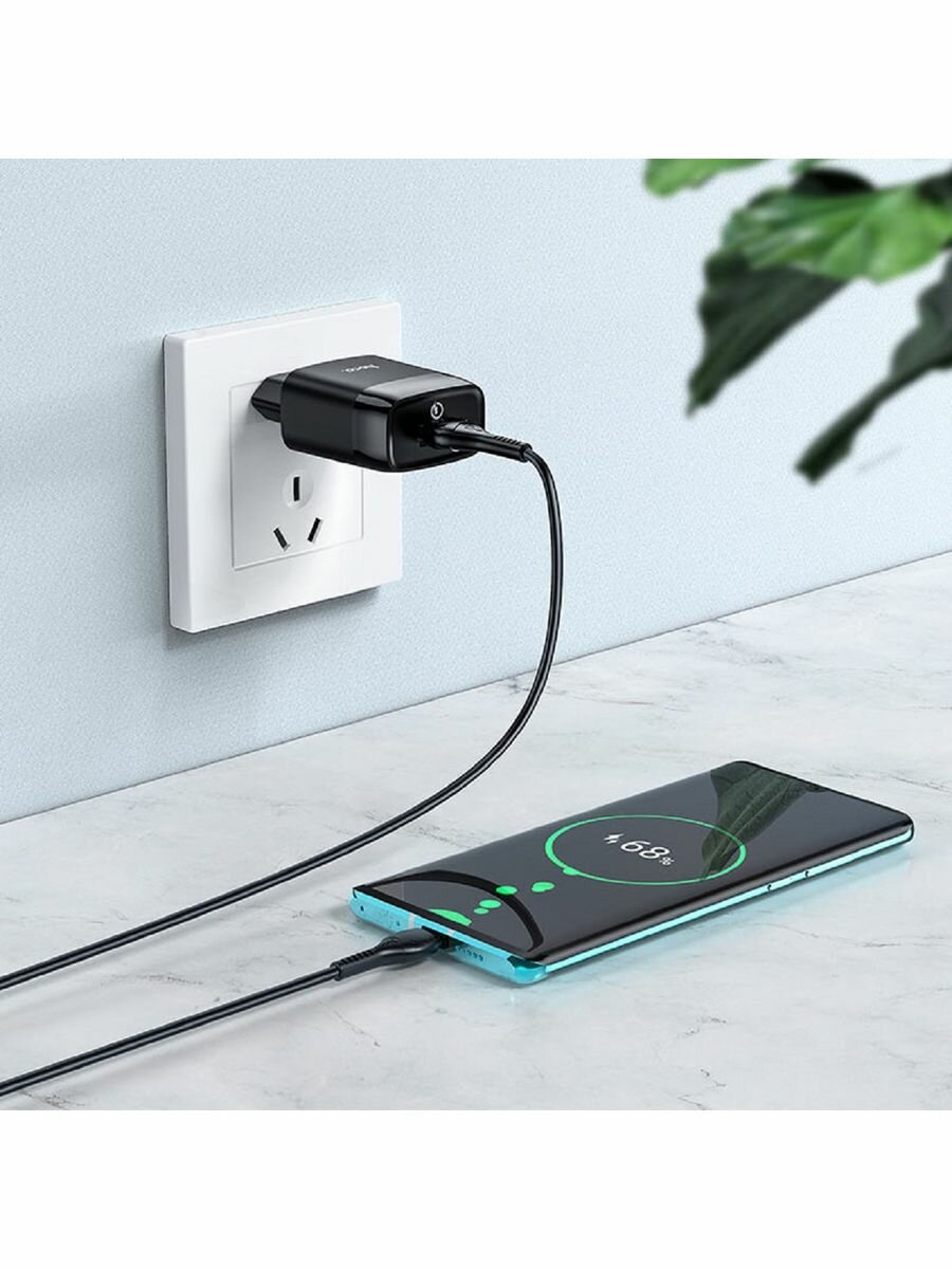 Зарядное устройство для iPhone Type-C 3A 20W. Hoco C12Q Hoco C72Q с шнуром Micro 1USB QC3.0 18W черное