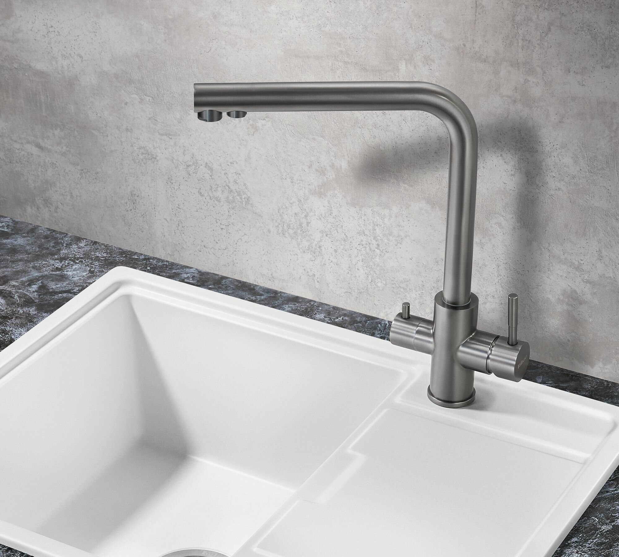 Смеситель для кухни под фильтр с краном для питьевой воды Milacio Ultra ( MCU.553. GR ) серый металлик