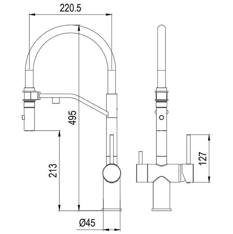 Смеситель для кухни Milacio Ultra с подключением фильтра, нержавеющая сталь (MCU.553.SS)