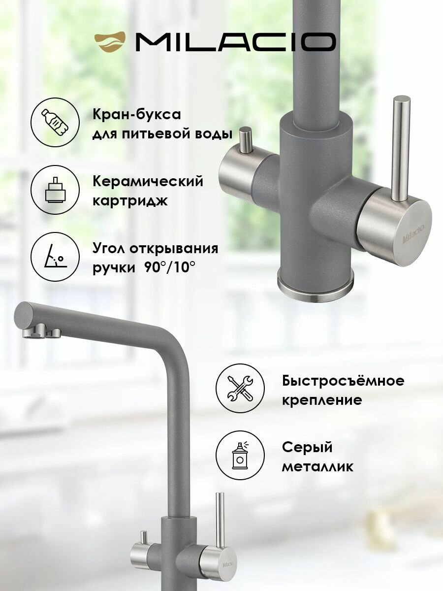 Купить Смеситель для кухни под фильтр с краном для питьевой воды Milacio Ultra ( MCU.553. GR ) серый металлик