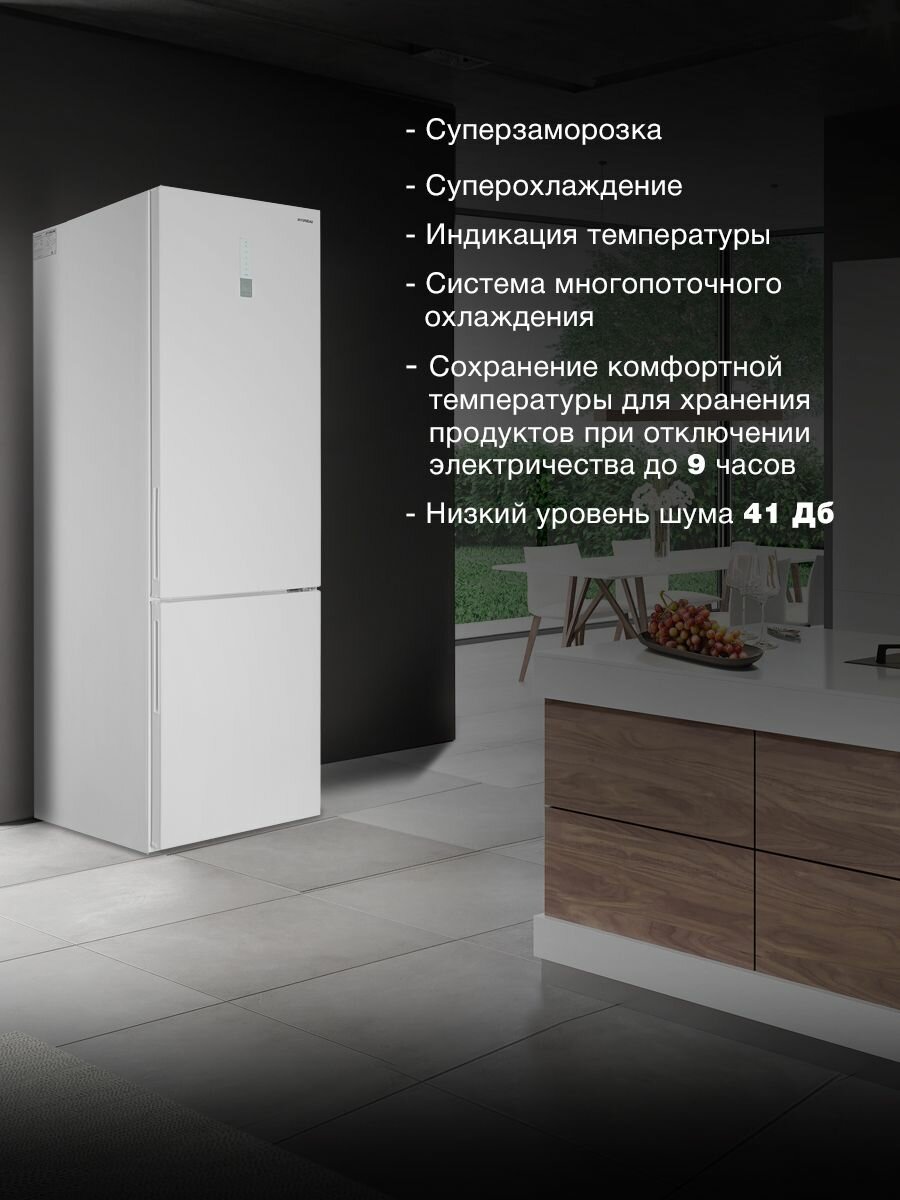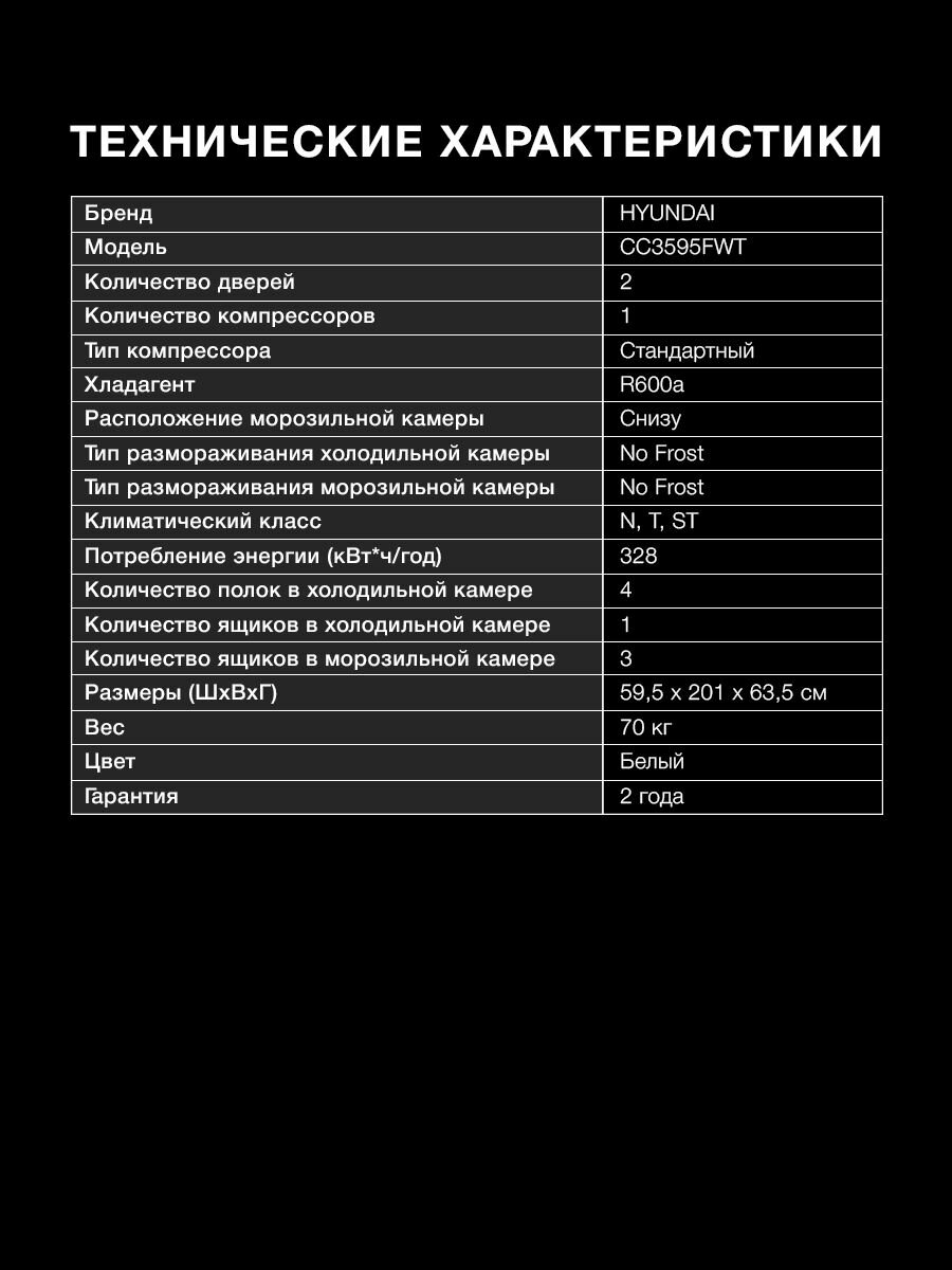 СохранитьХолодильник с нижней морозильной камерой HYUNDAI CC3595FWT, NoFrost, Объем 360 л, управление Сенсорное с Дисплеем, Уровень шума 41 дБ, LED освещение Белый интересное: