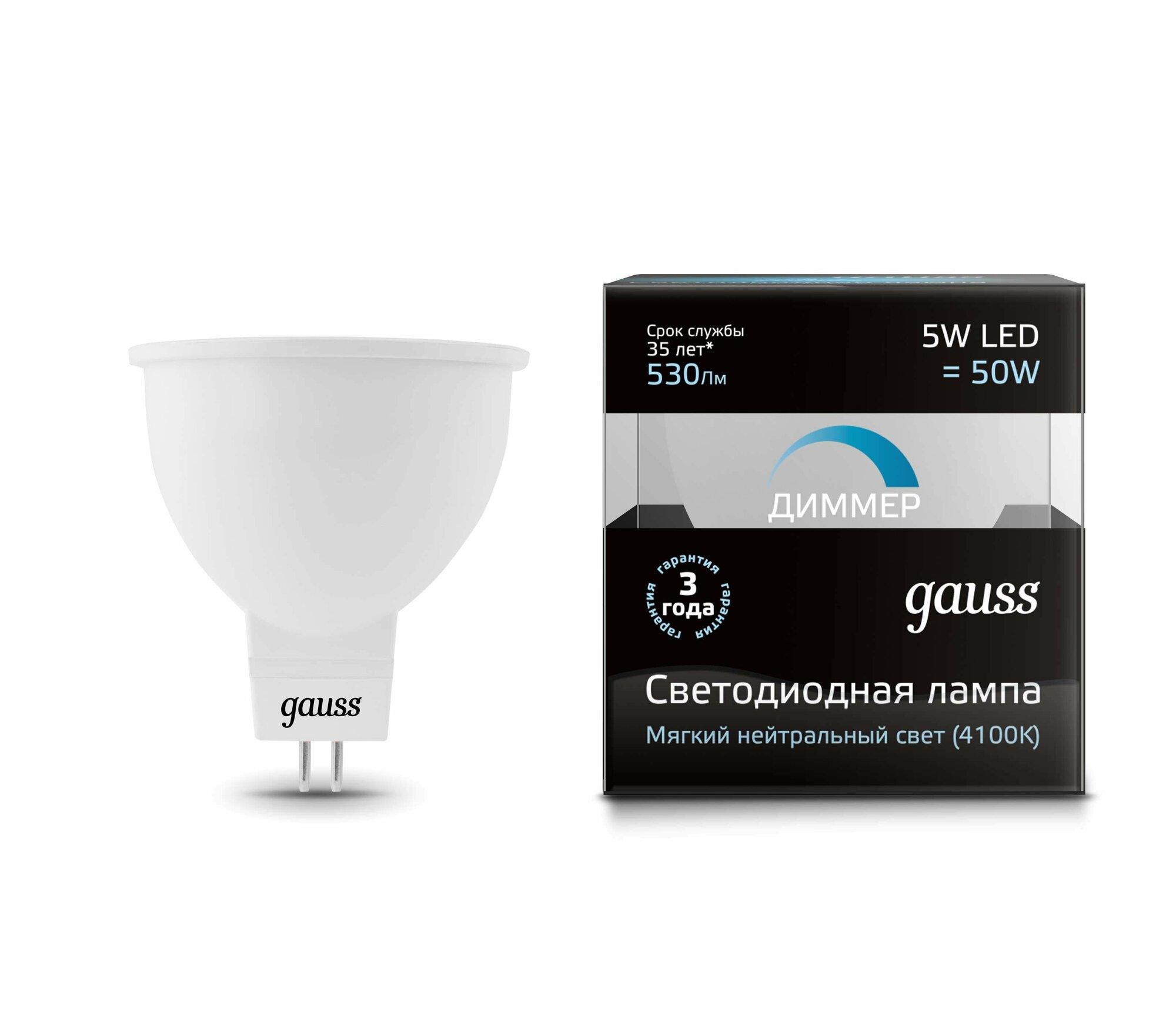 Лампа Gauss LED DIMM 101505205-D MR16 5W GU5.3 4100K диммируемая